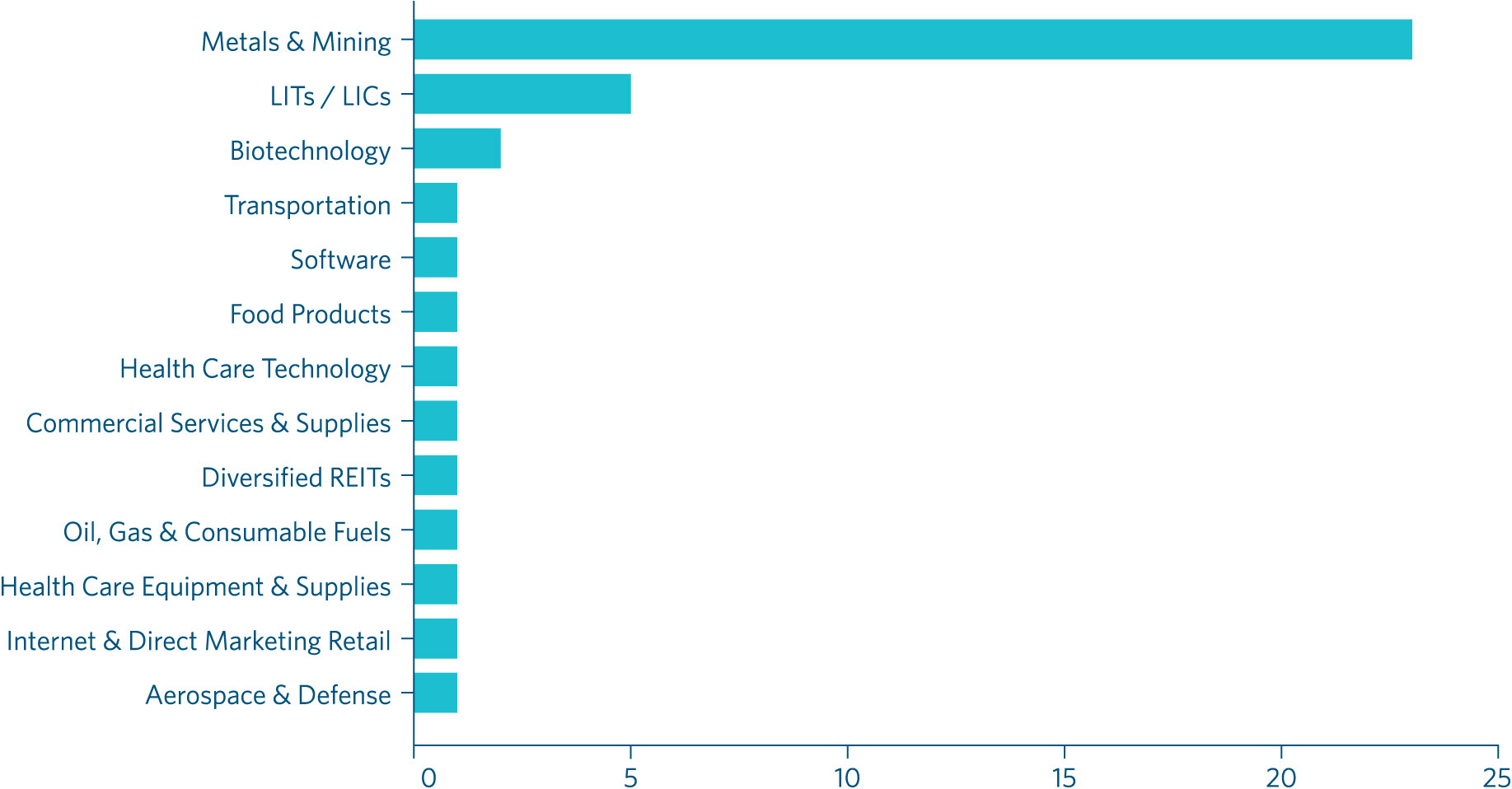 The largest indusattempt group represented amongst IPO candidates in 2025 was the Metals & Mining indusattempt with 23 IPOs reflecting the ASX’s strong global reputation as a global hub for metal and mining companies. Gold miners (of which there were 16) had a particularly good year and strong second half, reflecting the surge in gold prices across 2025.