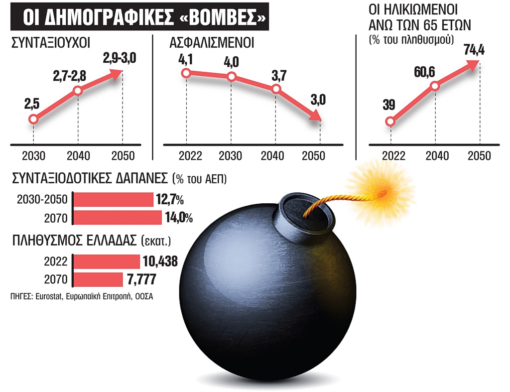 New “alarm bells” are sounding over a “demographic timebomb” expected to affect the sustainability of Greece’s social security system in the coming decades, although the Greek government this week again insisted that it will not proceed with any hike in the retirement age from 2027 and onwards.
