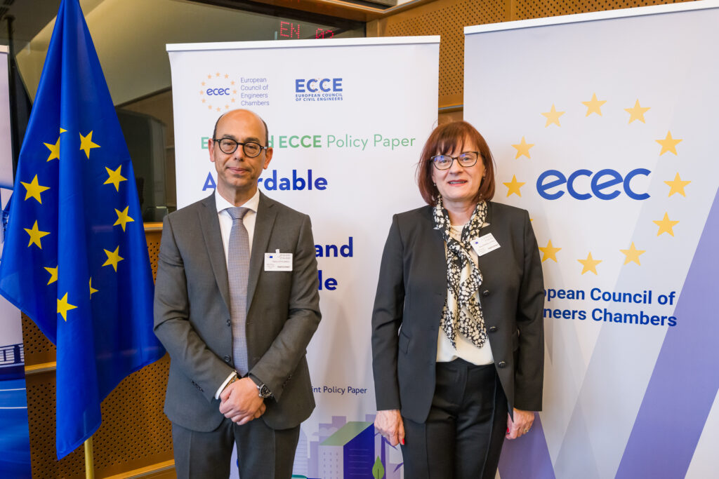 On Tuesday, 21 April, Nina Dražin Lovrec, President of the European Council of Engineers Chambers (ECEC), and Platonas Stylianou, President of the European Council of Civil Engineers (ECCE), in Brussels presented a joint policy paper titled “A European Engineering Vision for Affordable, Safe and Sustainable Hoapplying.”