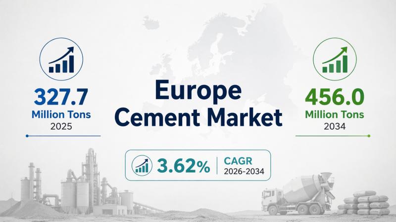 According to the latest analysis by IMARC Group, the Europe Cement Market reached a volume of 327.7 Million Tons in 2025 and is expected to grow to 456.0 Million Tons by 2034, exhibiting a CAGR of 3.62% during 2026-2034.