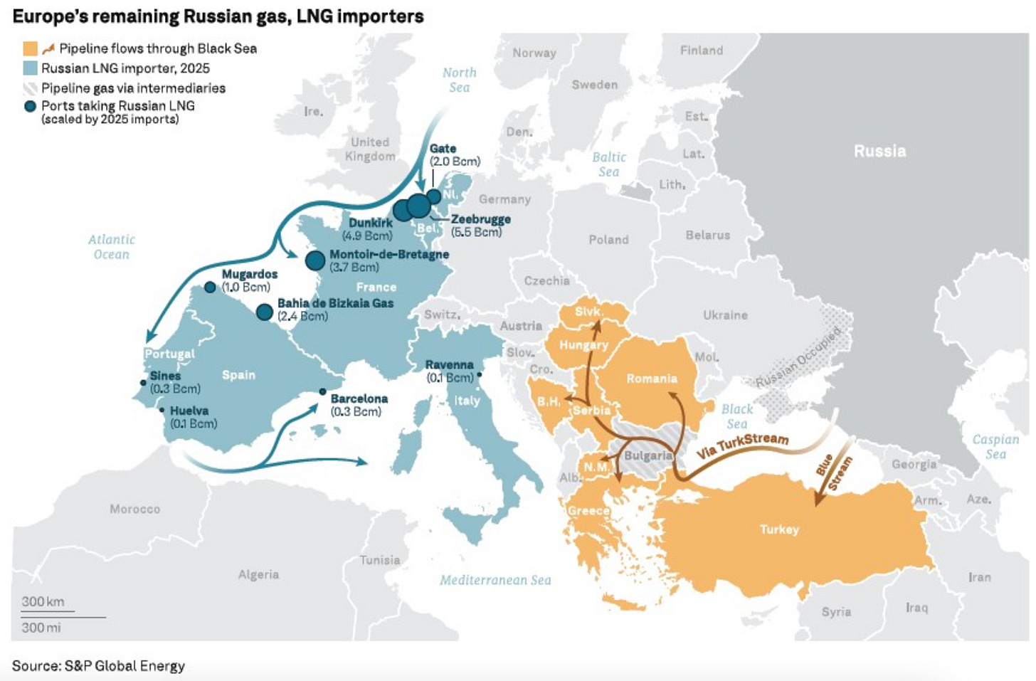 And to build matters worse, view again at the LNG import chart. The top segment, larger than that from the Middle East, displays LNG imports from … Russia. Europe has still not fully weaned itself of gas from Russia. Eastern Europe continues to draw Russian gas by pipeline by way of the Black Sea. The rest of Europe acquires Russian LNG.