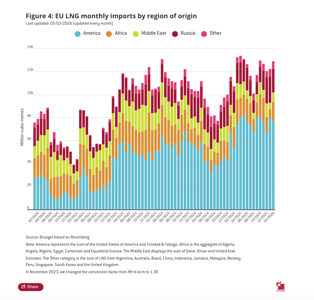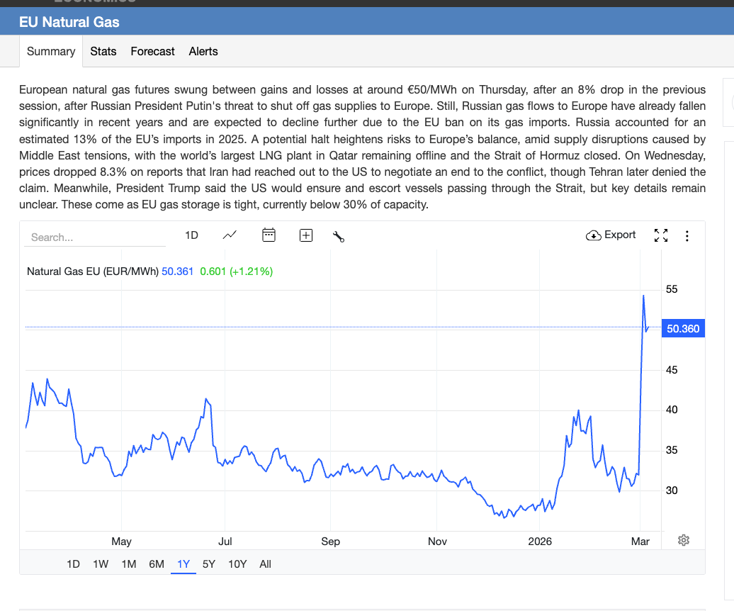 On March 4th, perhaps unsurprisingly in light of Europe’s toughening stance on sanctions and the threat finally to finish gas imports this year, Putin threatened that Russia could stop selling LNG to Europe, now!