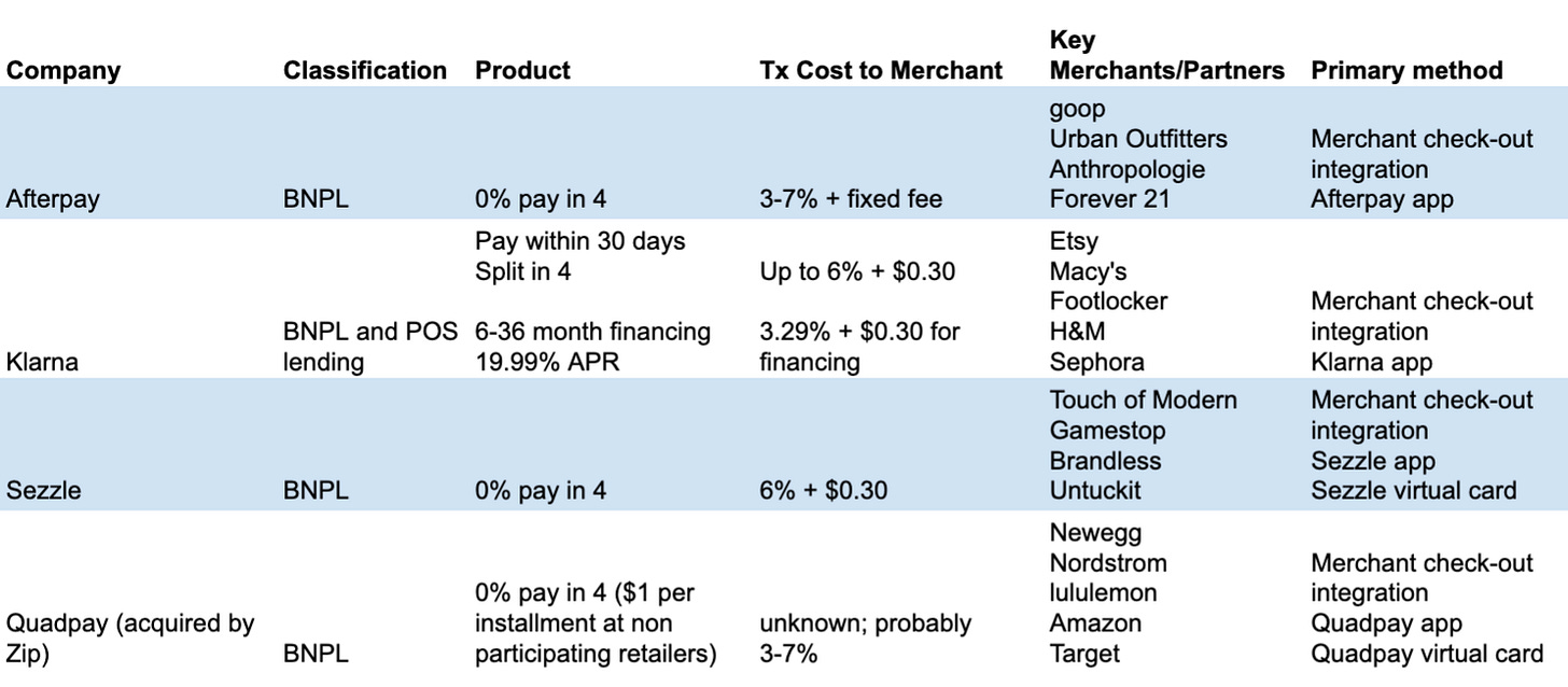 Since I published this piece in late 2020, BNPL has been more “evolution” than “revolution.” Category leaders like Affirm and Klarna have continued to expand their product stack, while studiously avoiding offering the product both portray negatively: a credit card.