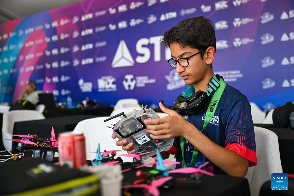 A participant adjusts a drone controller at the technology event TEKNOFEST in Istanbul, Türkiye, Sept. 17, 2025.