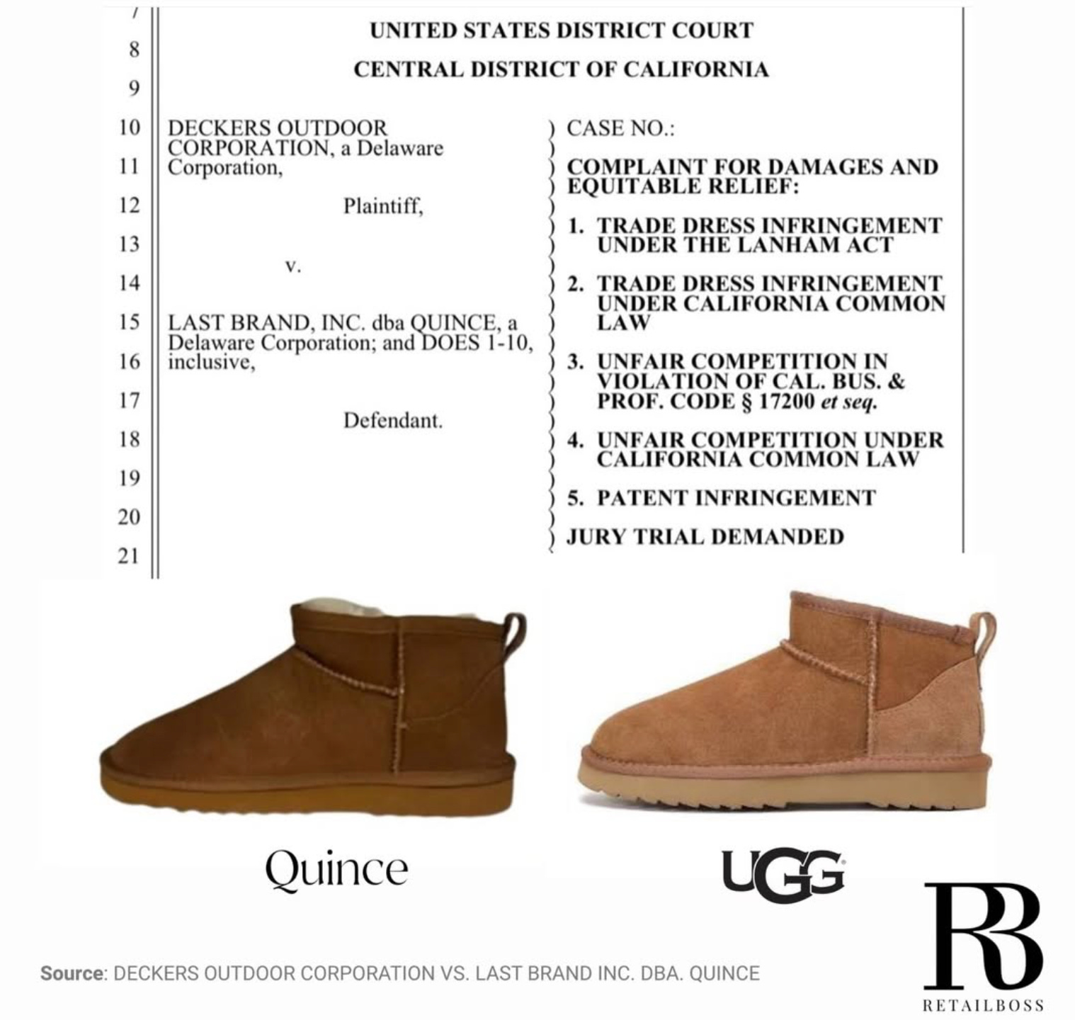 Deckers’ long-running war on “UGG dupes” has entered a new phase, with Quince now suing the UGG owner and questioning a court to treat UGG’s own IP playbook as the competitive problem in shearling boots. After winning a key ruling that the Classic Ultra Mini and Tasman designs are too generic for trade dress protection, Quince has filed an antitrust and unfair competition complaint accapplying Deckers of operating a “litigation assembly line” of sham trade dress suits to scare off value-priced rivals and keep UGG prices elevated.