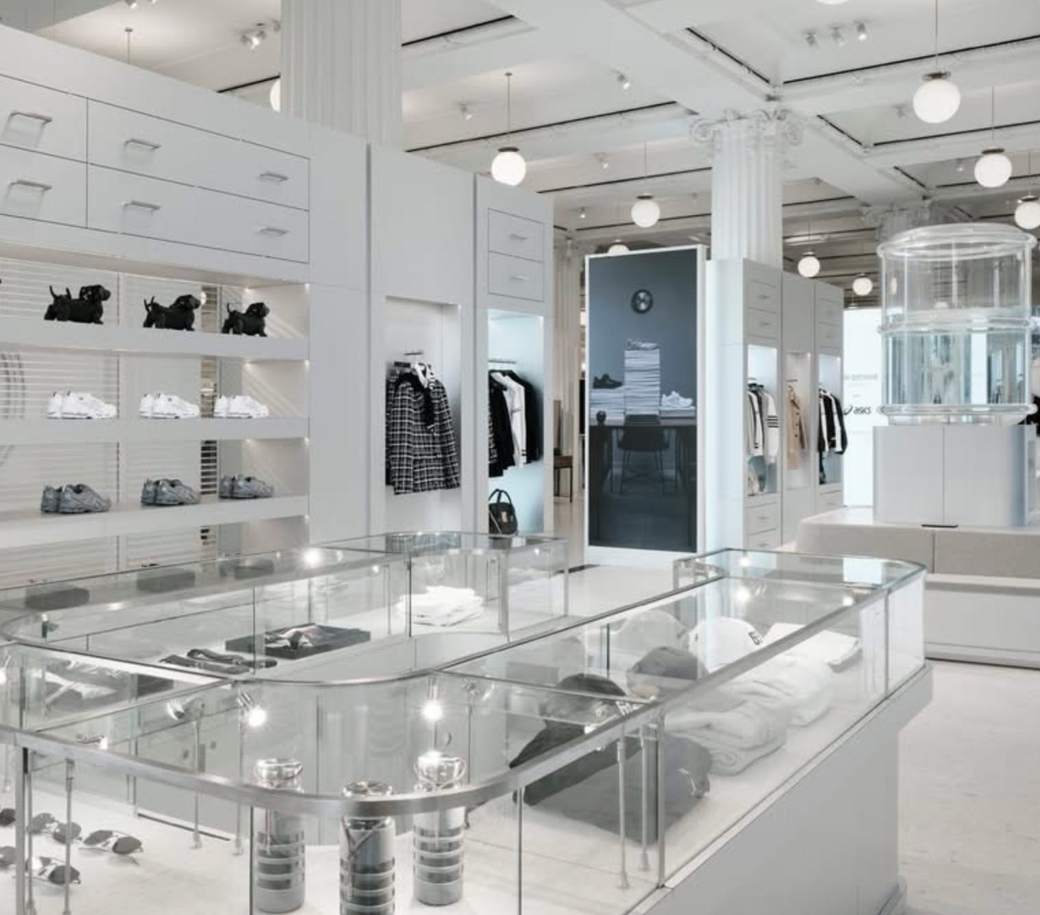 Thom Browne has turned London’s Selfridges Corner Shop into an immersive, office-inspired fantasy that layers cubicle culture, tailoring, and performance art into one surreal retail moment. The installation functions as both a displayroom and stage, with Browne’s signature grey suiting, pleated skirts, and uniforms recontextualized through props, set design, and choreographed scenarios that invite shoppers to linger and observe.